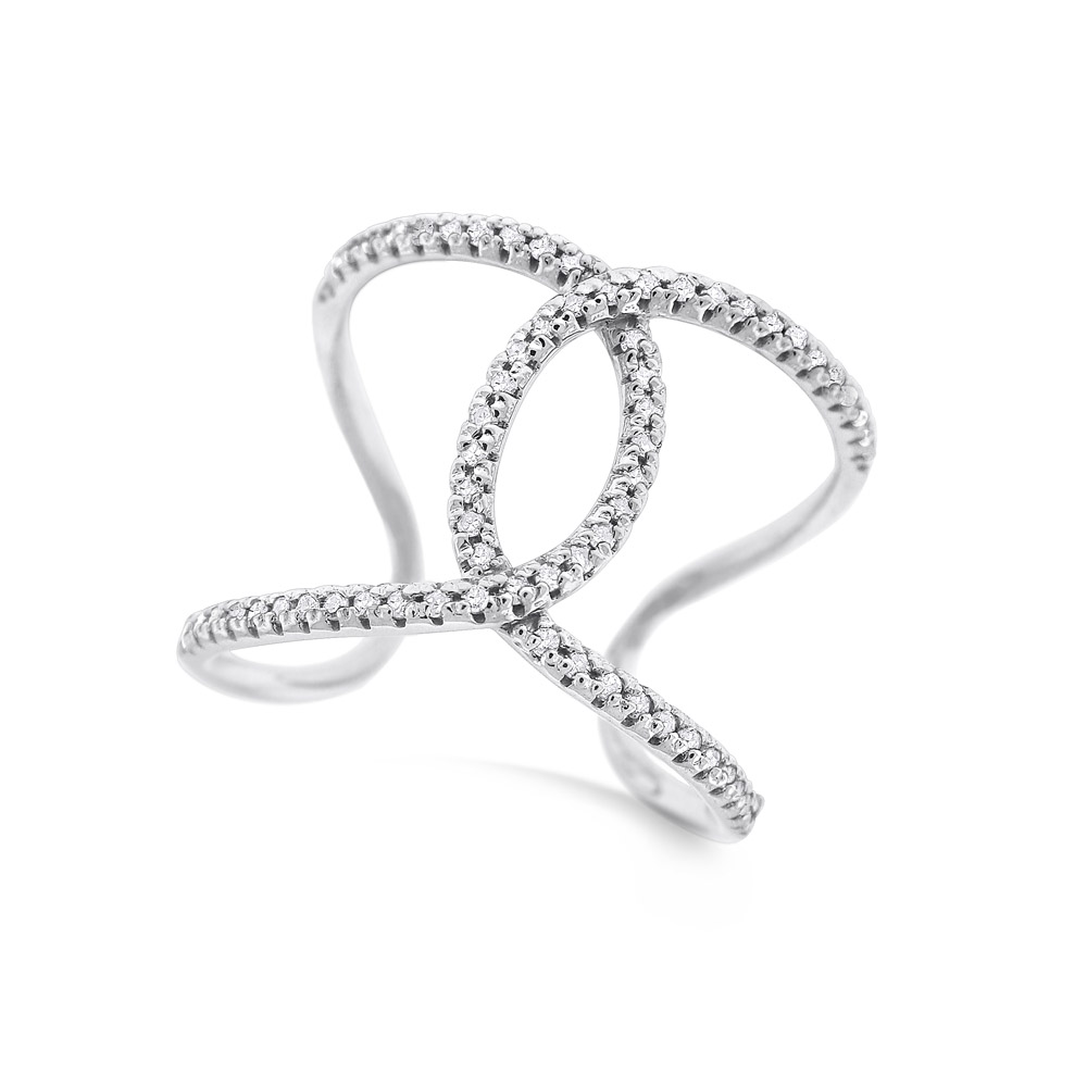 This fashion forward diamond ring, intertwined with diamonds will look splendid as an everyday ring or a night out with the girls. Set in 14k white gold with 67 diamonds weighing .24 ct tw, it is a real as special as you are unique. You won��t be sorry when you scoop up this great find.