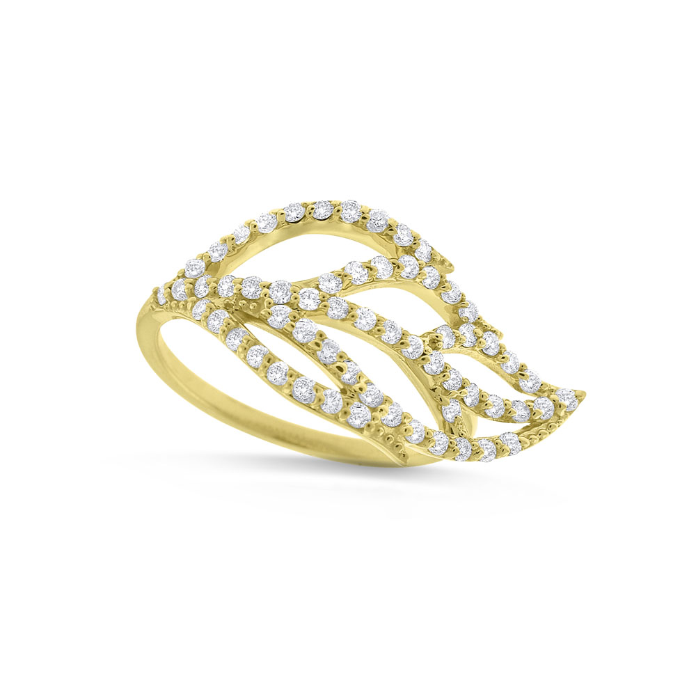 Diamond Leaf Ring in 14K Yellow Gold with 60 Diamonds Weighing .60 ct tw