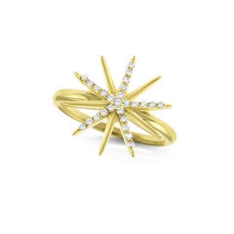 Diamond Starburst Ring in 14K Yellow Gold with 26 Diamonds Weighing .14 ct tw