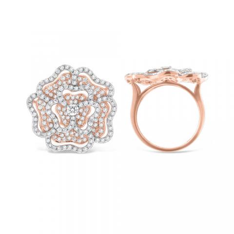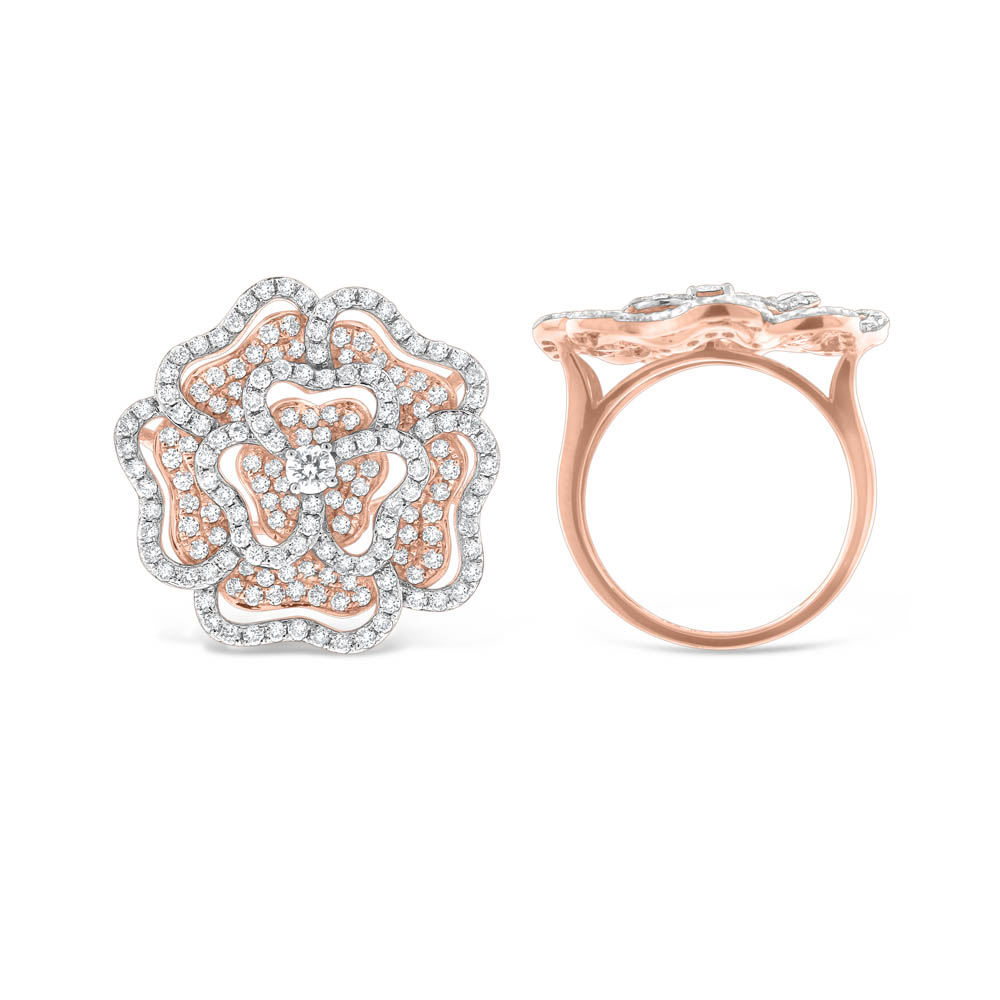 Diamond Floral Medallion Ring in 14K Rose Gold with 169 Diamonds Weighing 1.43 ct tw