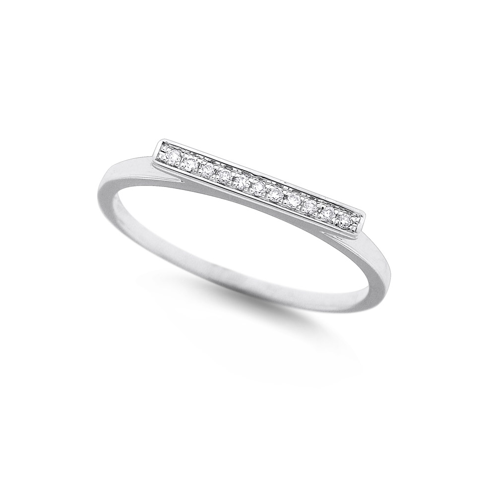 Diamond Bar Stack Ring in 14K White Gold with 11 Diamonds Weighing .05 ct tw