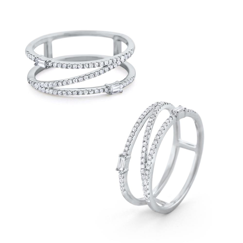 Shining round brilliant & baguette diamonds are arranged in a fun, modern “z” shape for a fresh look. Part of KC Designs Mosaic Collection, this ring makes a standout addition to your collection.