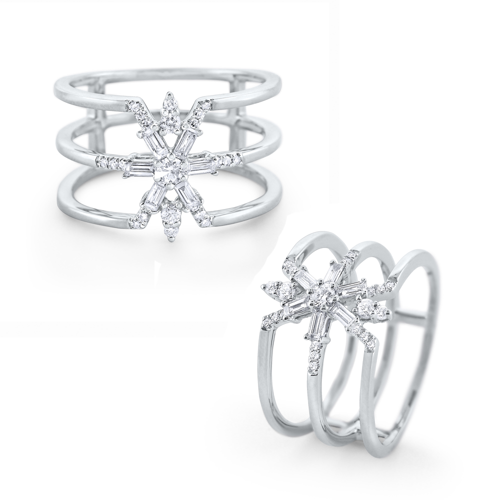 Impress your friends with this trendy, stylish ring. Part of KC Designs Mosaic Collection, round brilliant & baguette diamonds shine on this exquisite ring.