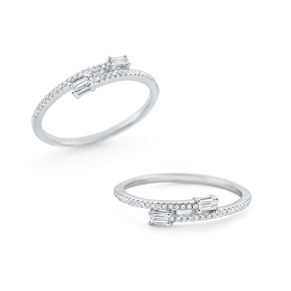 Make a subtle statement with this lovely ring! Part of KC Designs Mosaic Collection, shining round brilliant & baguette diamonds wrap around your finger. Wear it solo or stack with your other KC favorites for a one of a kind look.