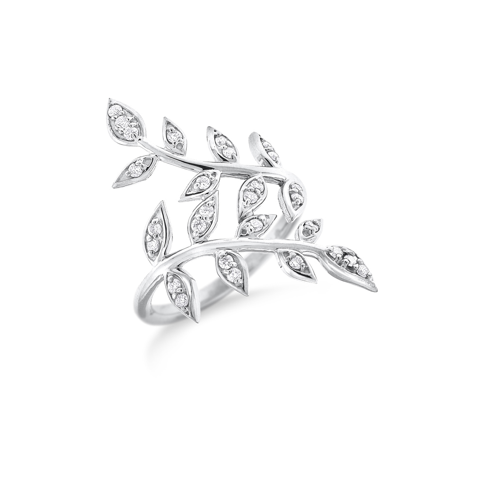 Leaves on a vine are beautifully crafted in diamonds and gold. The perfect accessory for spring, and right on trend.