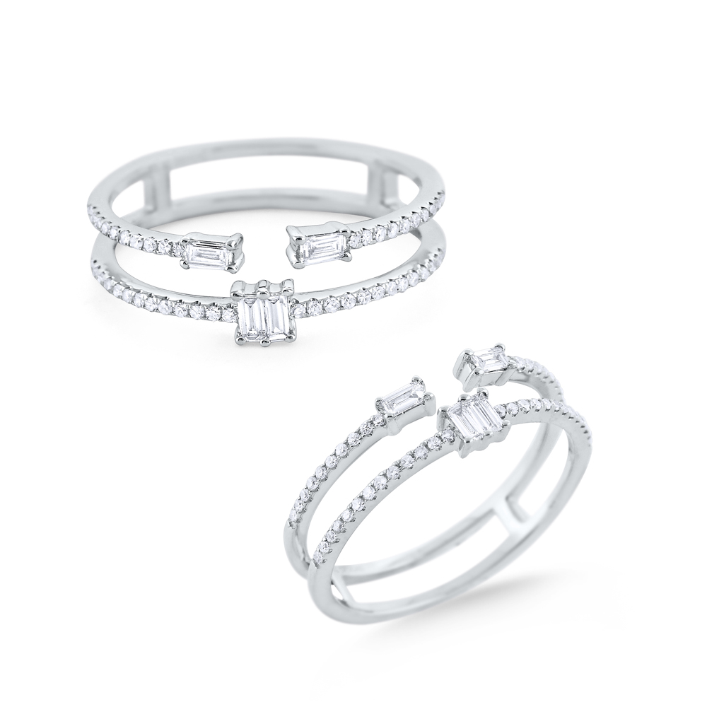 Diamond Double Band Mosaic Ring Set in 14 Kt. Gold