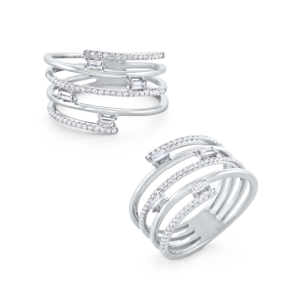 The combination of round brilliant & baguette cuts makes this dynamic ring sparkle. Part of KC Designs Mosaic Collection, the spiral shape evokes an airy feeling of movement. Wear it with your favorite ensemble!
