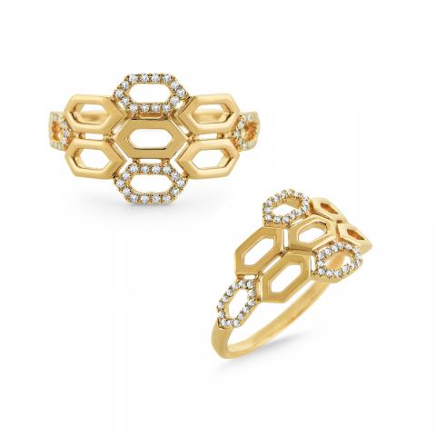 Diamond Honeycomb Ring Set in 14 Kt. Gold