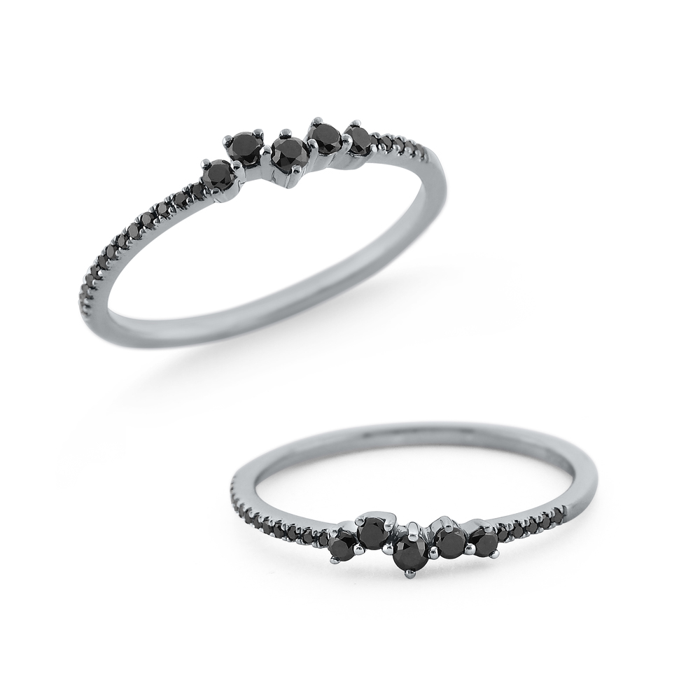 Black Diamond Stackable Ring Set in 14 Kt. Gold