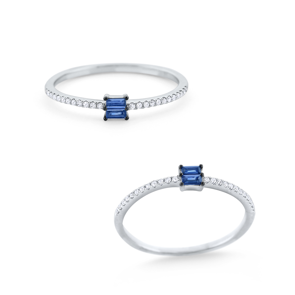 Part of KC Designs Everyday Color Collection, two vibrant blue sapphires grace this ring, along with sparkling round brilliant diamond accents. Wear it solo for a colorful, understated look, or stack it with your other KC Designs favorites!