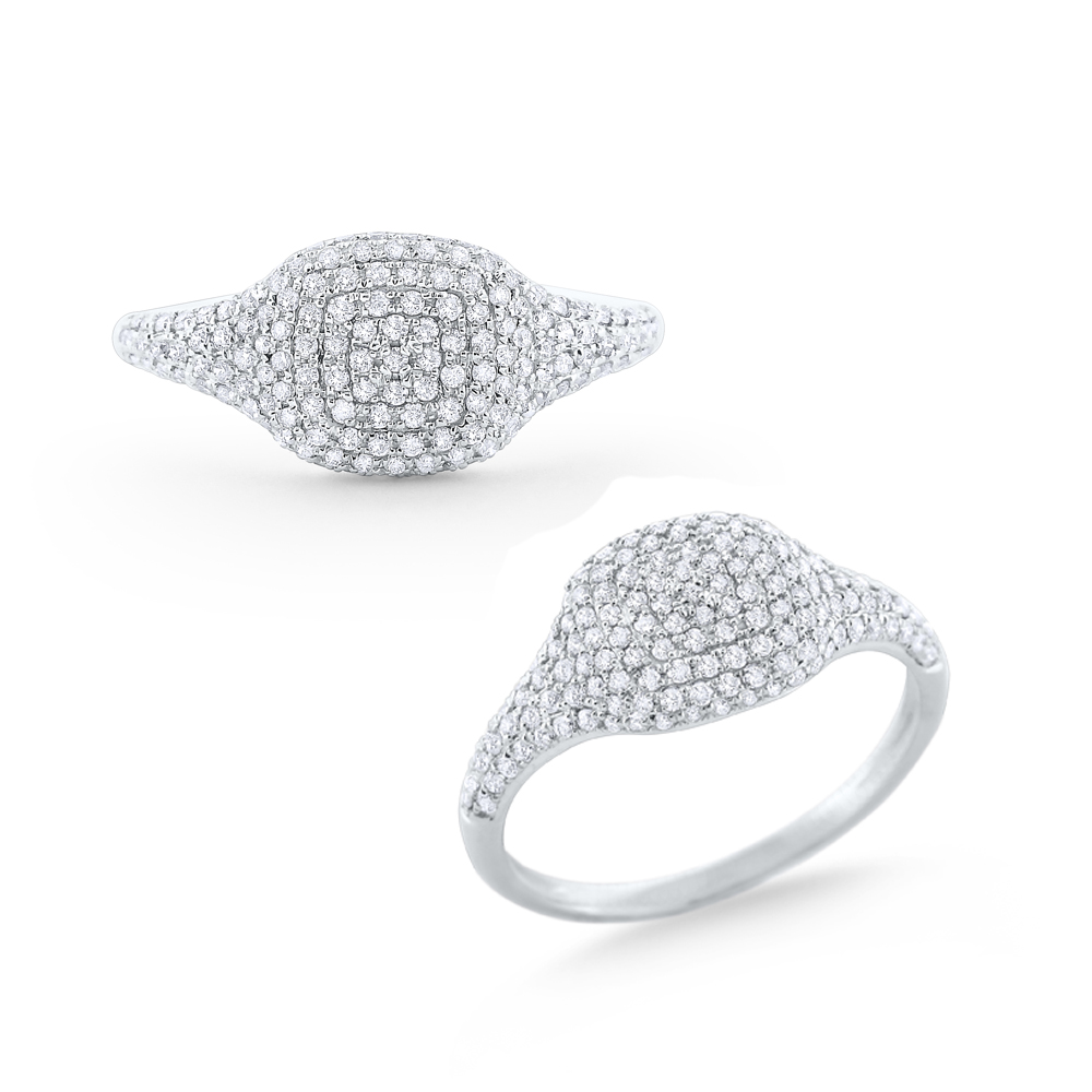 Add a fun pop of fashion to your look with this domed cushion ring! Set in 14 Kt. Gold, and designed with a diamond encrusted, domed look. It pairs well with other stack rings and is the perfect addition to your collection.