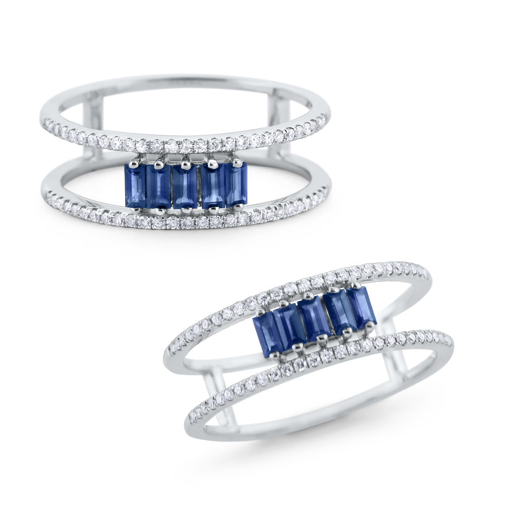 Dress to impress in cerulean blue sapphires with bands of shimmering diamonds set on either side. Part of KC Designs Everyday Color Collection, add a pop of pretty color that always looks as good as you do.