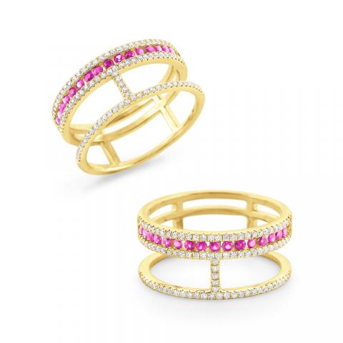Pink Sapphire & Diamond Double Band Ring Set in 14 Kt. Gold