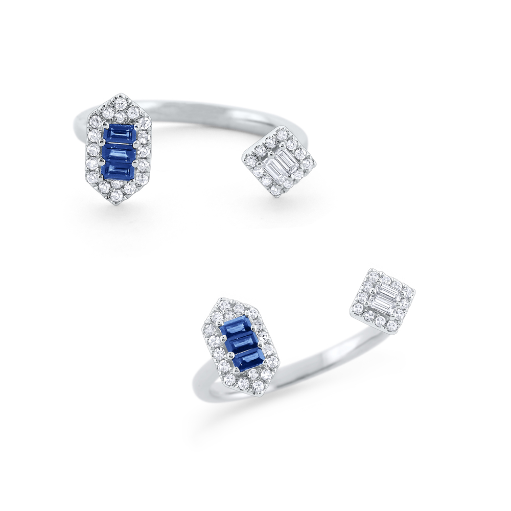 Part of KC Designs Everyday Color Collection, cerulean blue sapphires play off of sparkling diamonds from two geometric clusters. This dynamic ring is sure to garner many compliments.