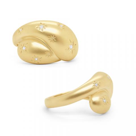 Star set diamonds sparkle and shine in this bold gold ring - right on trend.