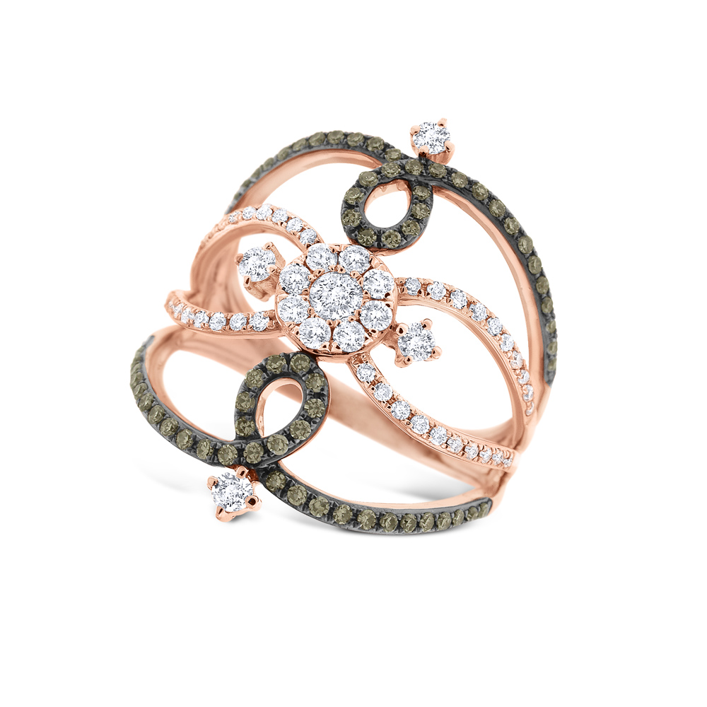 Diamond fashion ring beautifully crafted in gold with black and white diamonds.