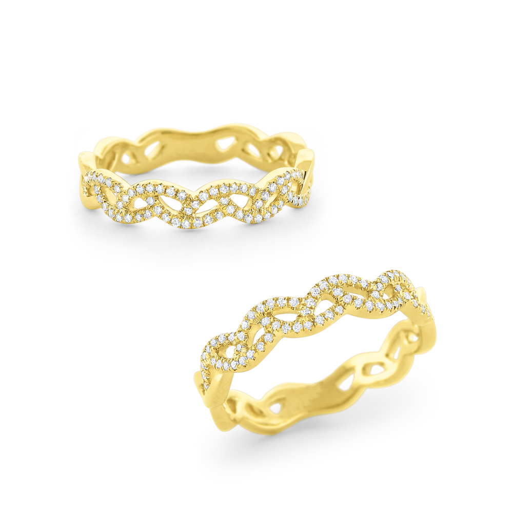Round cut diamonds sparkle in an open-worked weave pattern on this romantic, yet chic ring. This ring will make a standout addition to your collection.