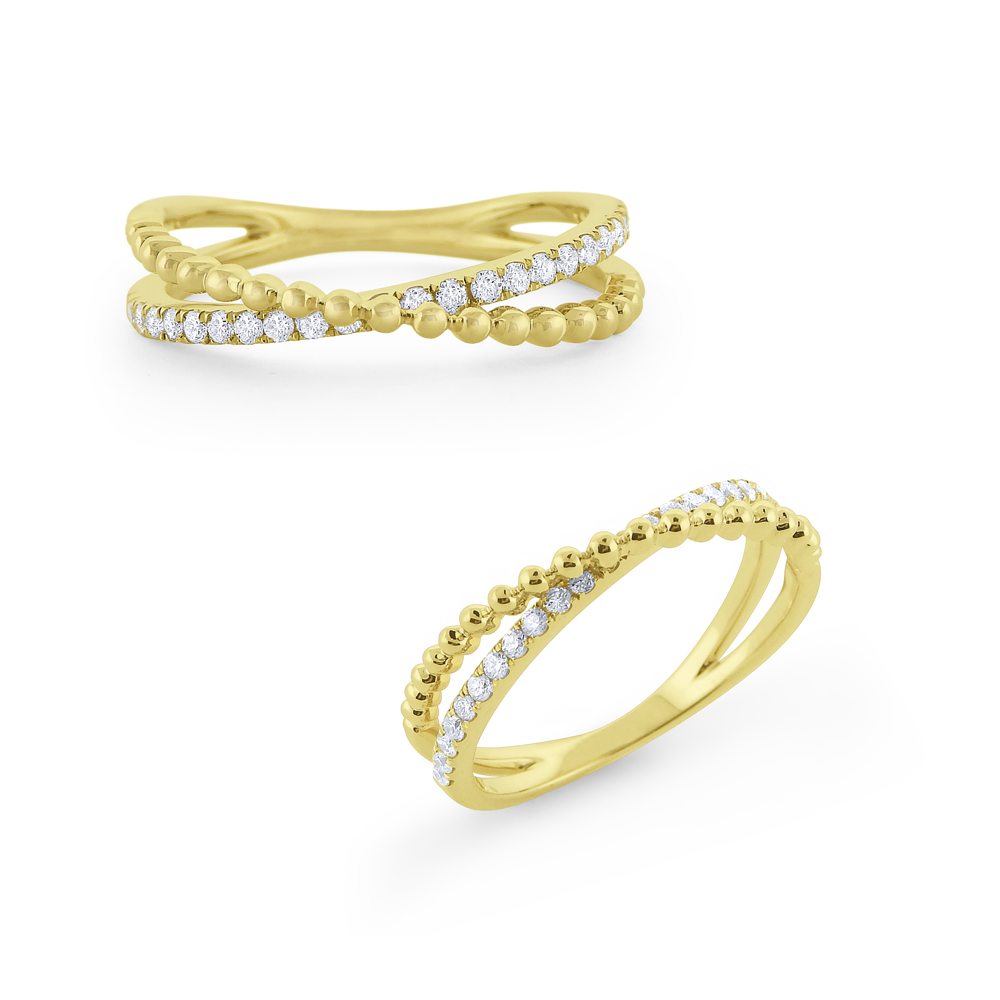 Diamond & Gold Milgrain “X” Ring Set inn 14 Kt. Gold