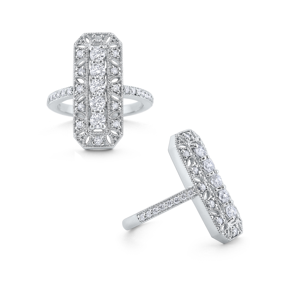 Celebrate your inner romantic with this charming pendant. 21 diamonds sparkle in this Art Deco inspired design. Wear it with your favorite lace dress and matching necklace & earrings for a romantic glamorous look.