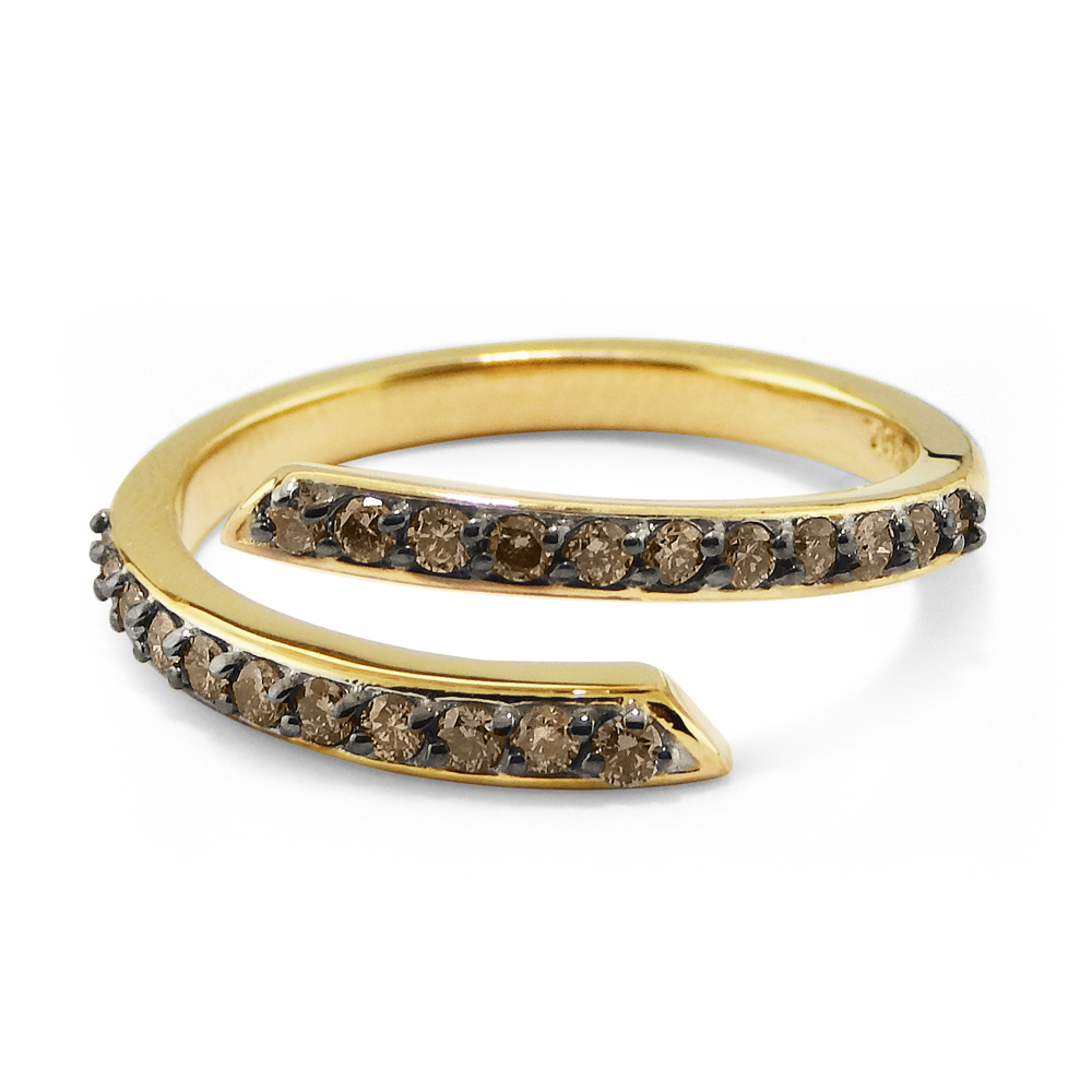 Champagne diamonds are set in 14k gold with a black rhodium finish, creating a simple yet unique look.