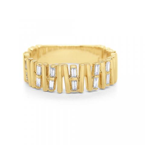 Diamonds are set among diamond "sticks" creating this modern band ring.