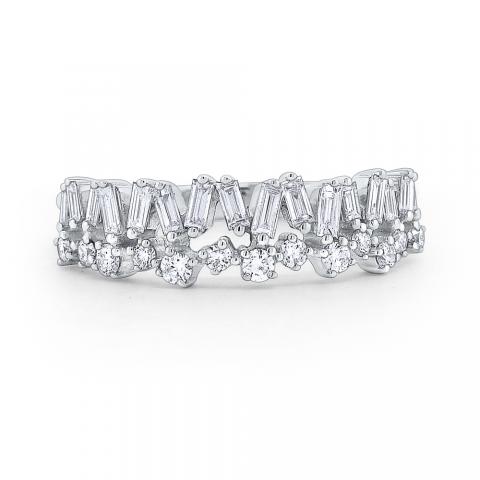 Light up your look with this chic ring. Part of KC Designs Mosaic Collection, scattered shining baguette cut diamonds are set above glittering round cuts.