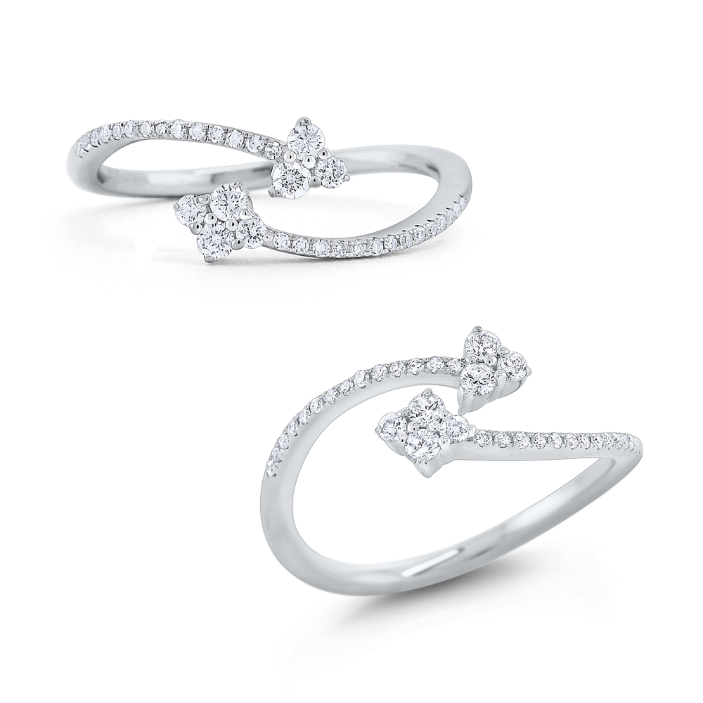 Glittering diamonds sparkle on your finger from this charming bypass ring that is sure to light up your look!