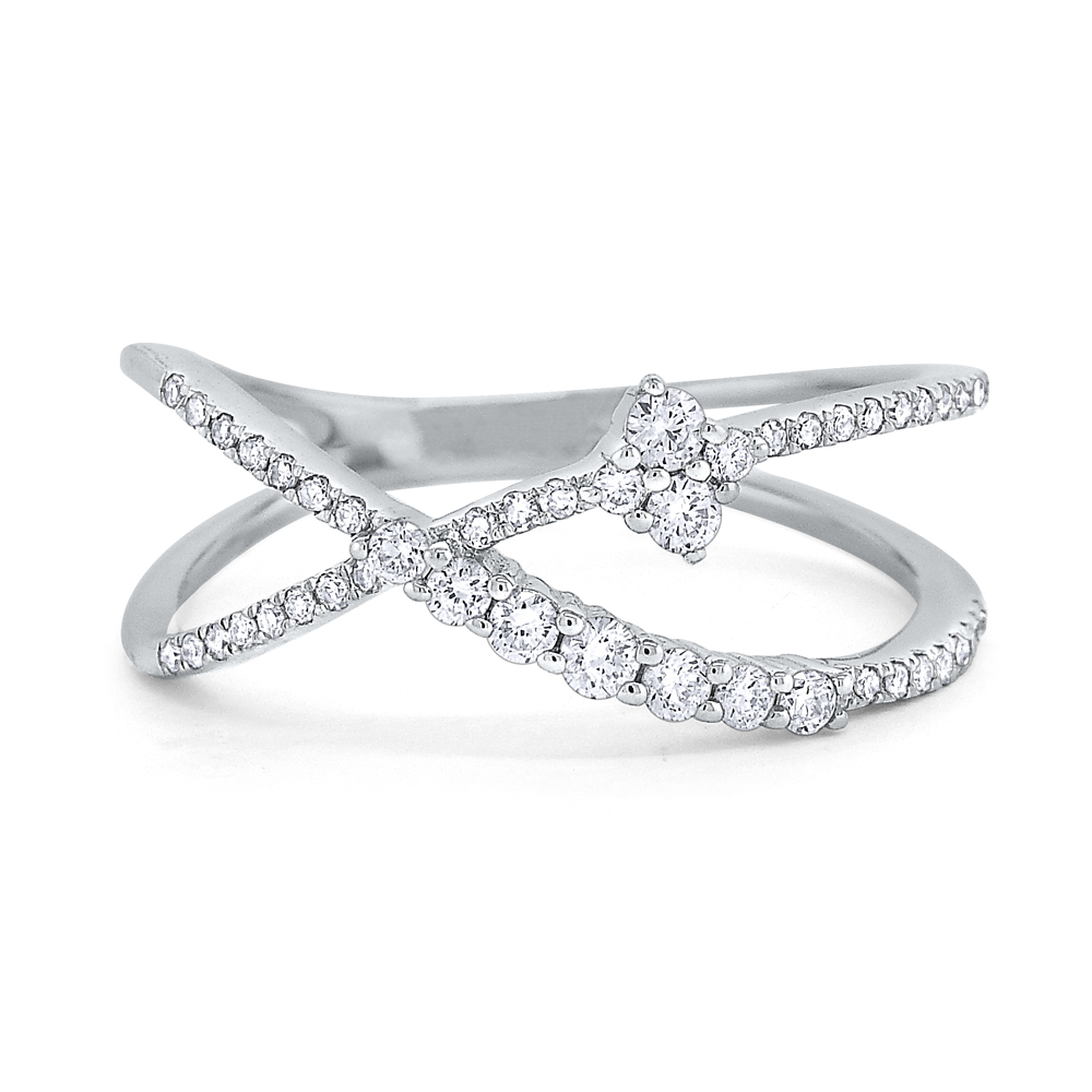Two rows of sparkling diamonds intersect on this fun & chic ring. Add the perfect amount of shine to any style.