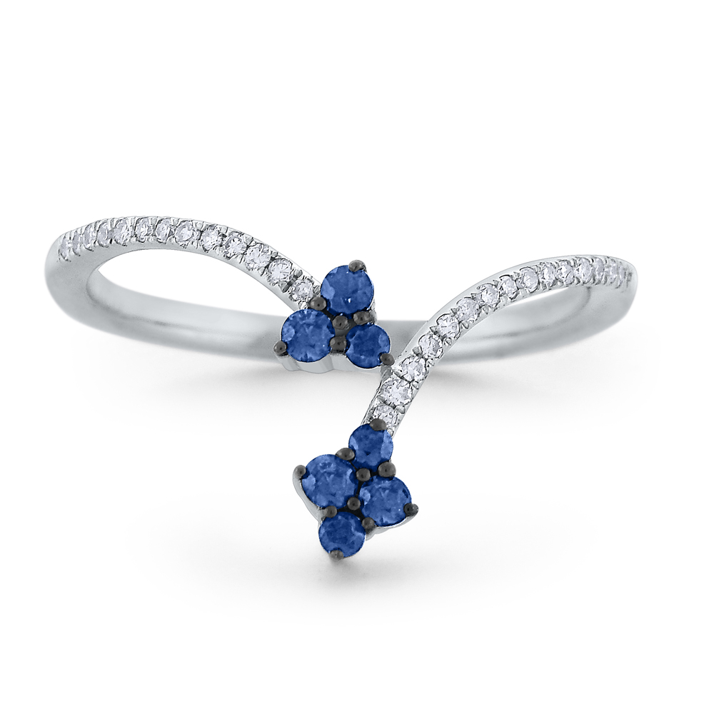 Add a fun pop of color to your look with this chic ring. Cerulean blue sapphires and glittering diamonds wrap around your finger for a stylish look.