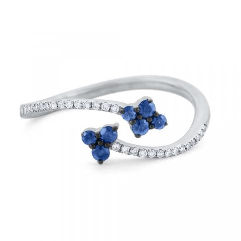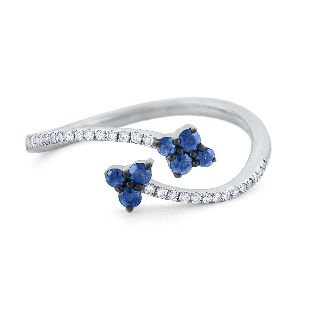 Add a fun pop of color to your look with this chic ring. Cerulean blue sapphires and glittering diamonds wrap around your finger for a stylish look.