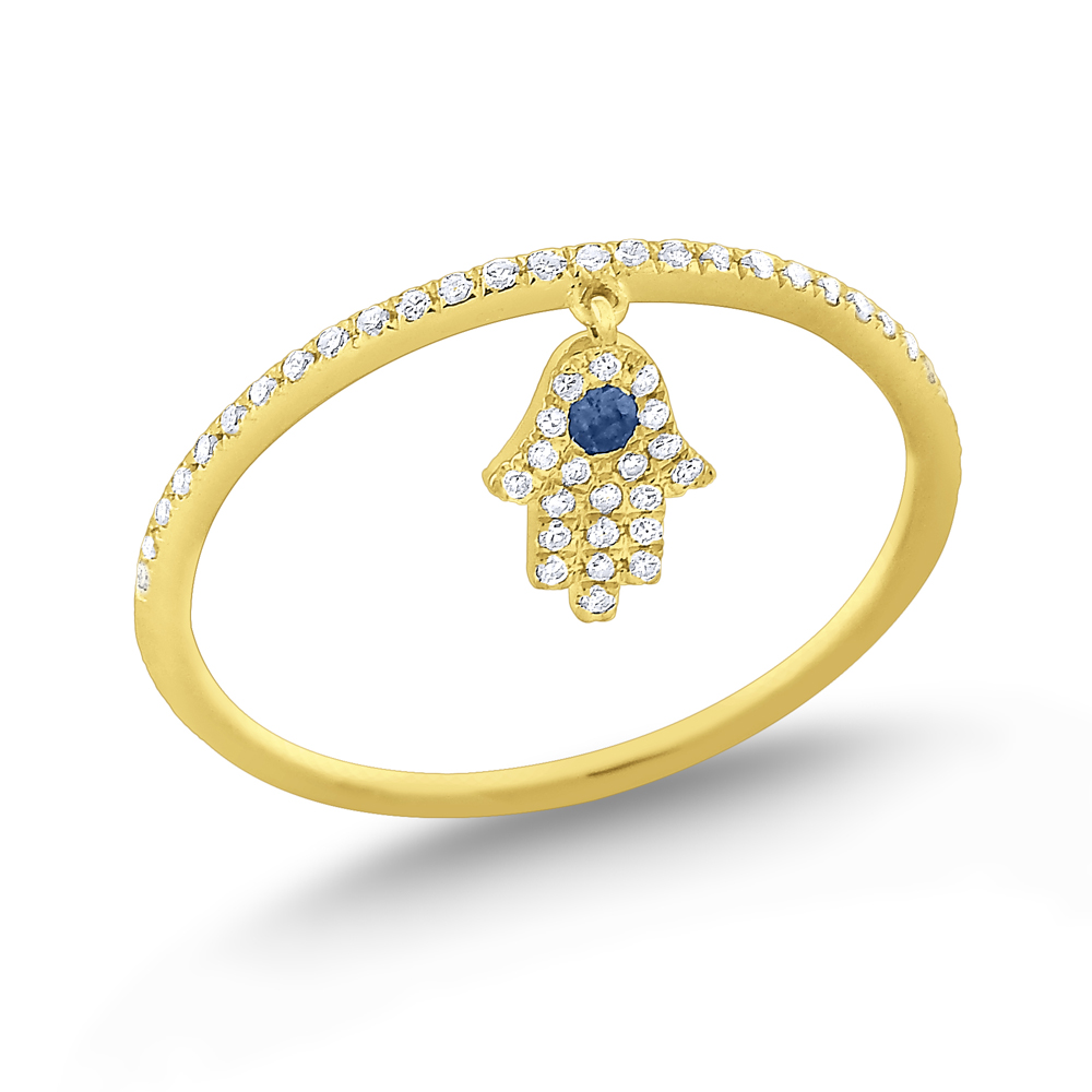 Blue Sapphire & Diamond Lucky Charm Hamsa Ring Set in 14 Kt. Gold