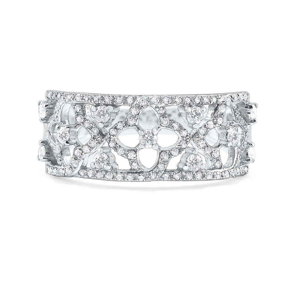 Wear this lace inspired diamond ring to add some glamour to that little black dress. Finish off the look with your favorite pair of KC diamond inside out hoops.