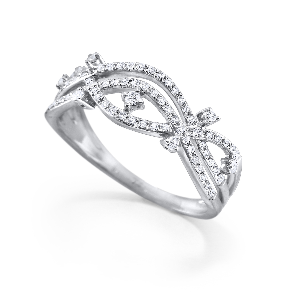 Rows of diamonds are delicately intertwined and accented with single set diamonds for a unique look.