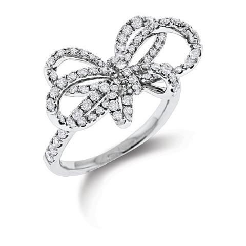 Diamond Bow Ring in 14k White Gold with 93 Diamonds weighing .87ct tw.