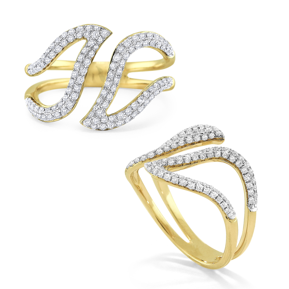 Get that chic sophisticated style with our cutting edge gold and diamond leaf ring.