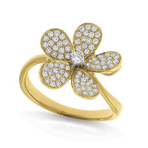 Diamond Large Floral Ring in 14k Yellow Gold with 81 Diamonds weighing .46ct tw.