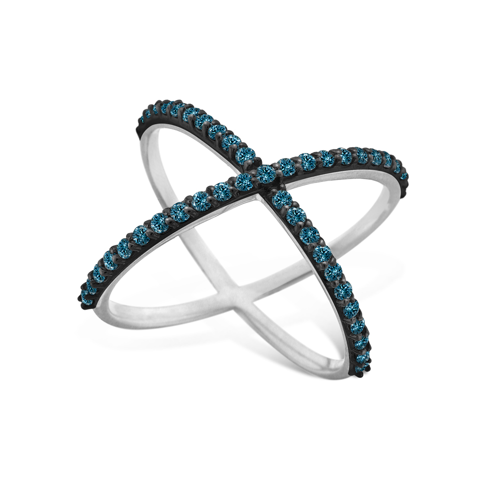 Add a little color to your gold and diamond collection with this simple yet amazing blue diamond X ring.