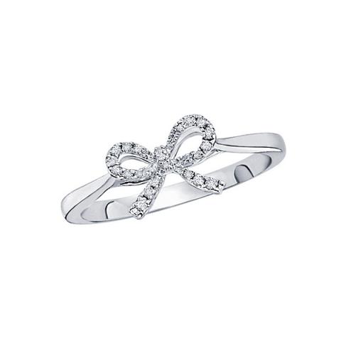 Diamond Mini Bow Ring in 14k White Gold with 22 Diamonds weighing .10ct tw.