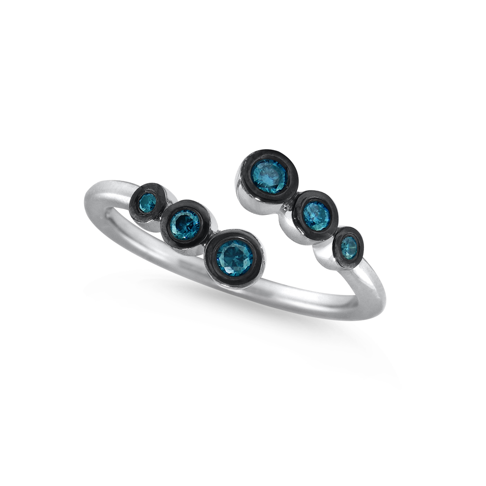 14k Gold and Blue Diamond Bubble Ring