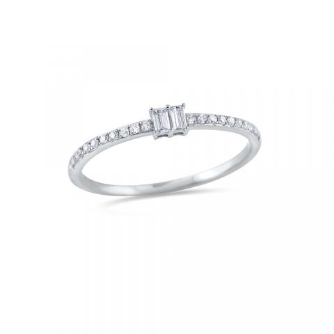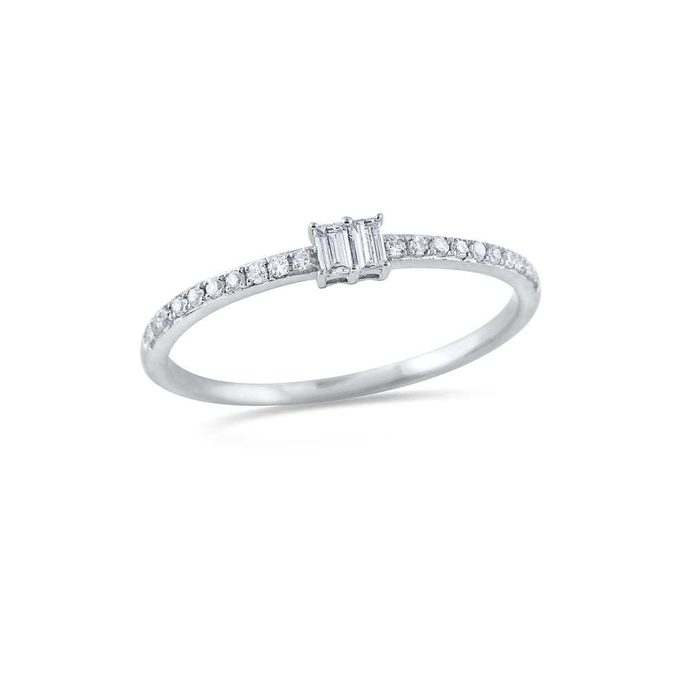 Petite baguette diamonds shine set in a round diamond band. wear it solo or stack with your other KC favorites.