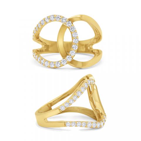 A solid gold and diamond loop intertwine creating this classic ring that will never go out of style.